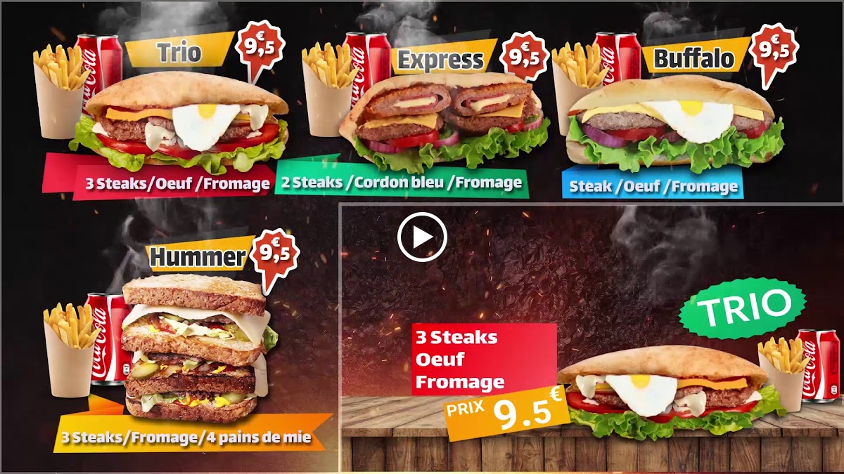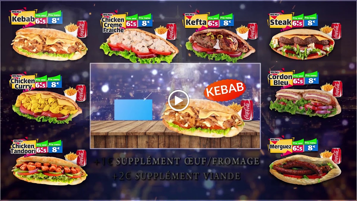 The menu features mouth-watering choices like the Galette Chicken Curry, Galette Kebab, and the Burger Double Cheese, all served with crispy fries and a refreshing 33cl beverage. The quality of ingredients and the flavors in each dish truly shine through, making every bite a delight.